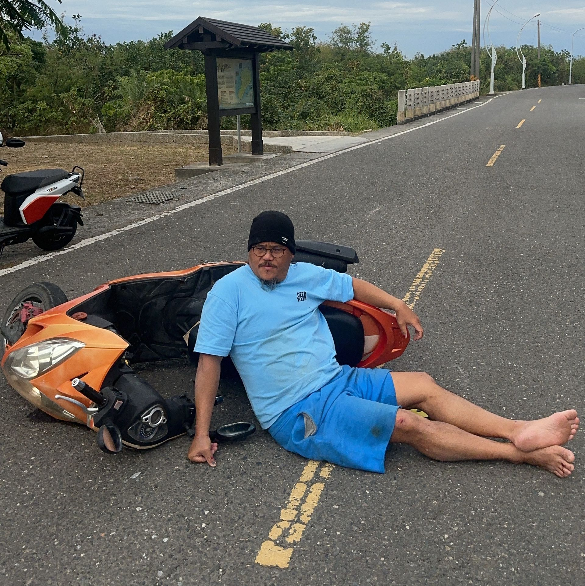 - Accident #2 (My worst experience): Someone stopped on the right side of the road started making a U-turn without looking to see if anyone was coming. I was going 50 km/h—too fast to stop on a dime. I needed to stop very suddenly to avoid hitting them, and the scooter collapsed and fell on my foot. I couldn't walk properly for two months and couldn't teach freediving during that time. The lesson? Watch for stopped scooters—they might move without warning. And maybe don't go 50 km/h.